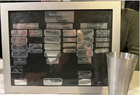 Mandagsklubben er fra 1990, og vi har eksisteret i 35 år – så det fejrer vi til afslutningen. Vi kan se at både Brians og Martins ”aner” er listet op som vindere. Bjørn opdaterer listen og Erik fører den ind på hjemmesiden.